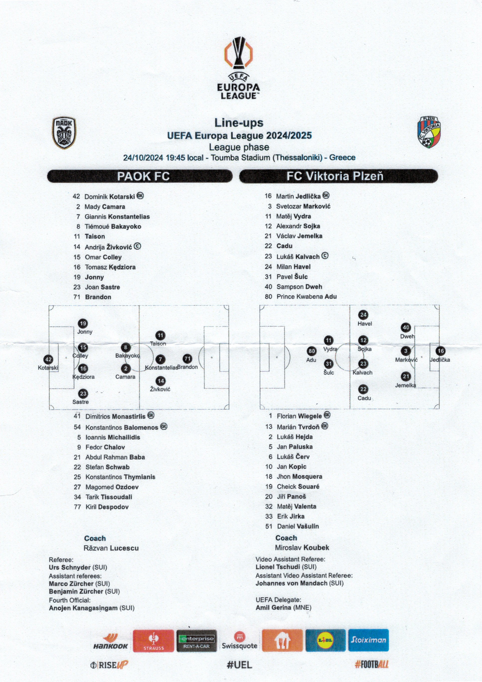 PAOK FC - FC Viktoria Plzeň 2:2